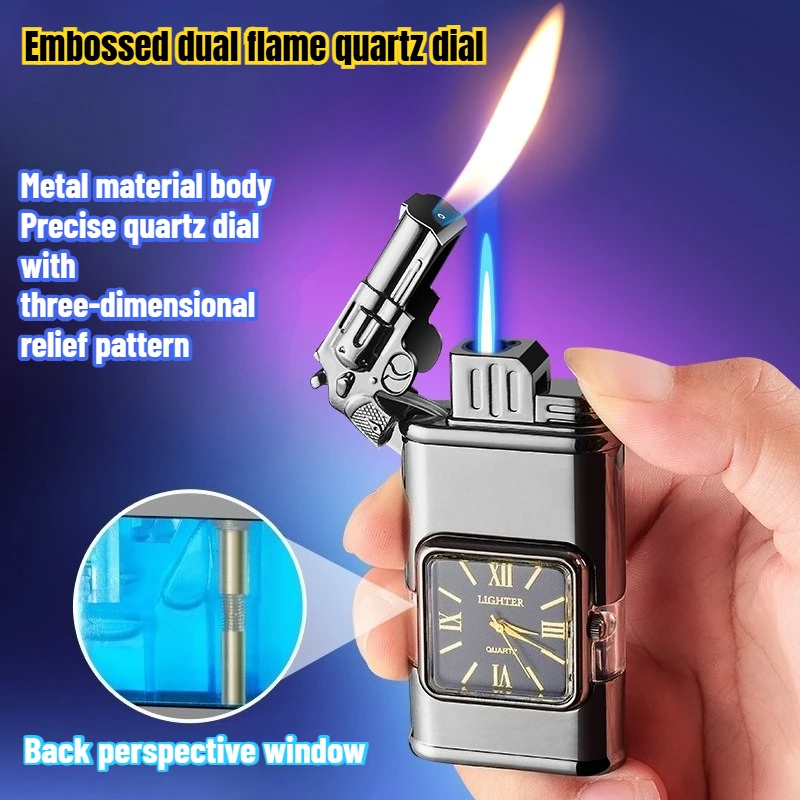 Dual-Flame Windproof Butane Gas Metal Lighter